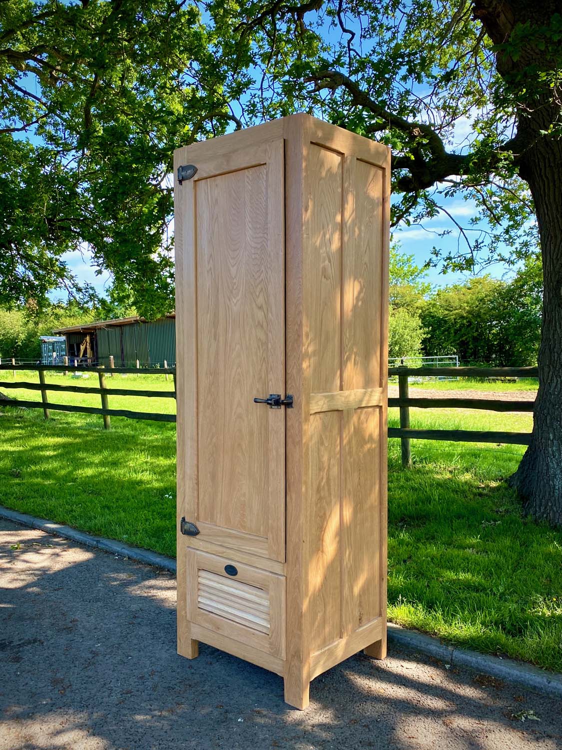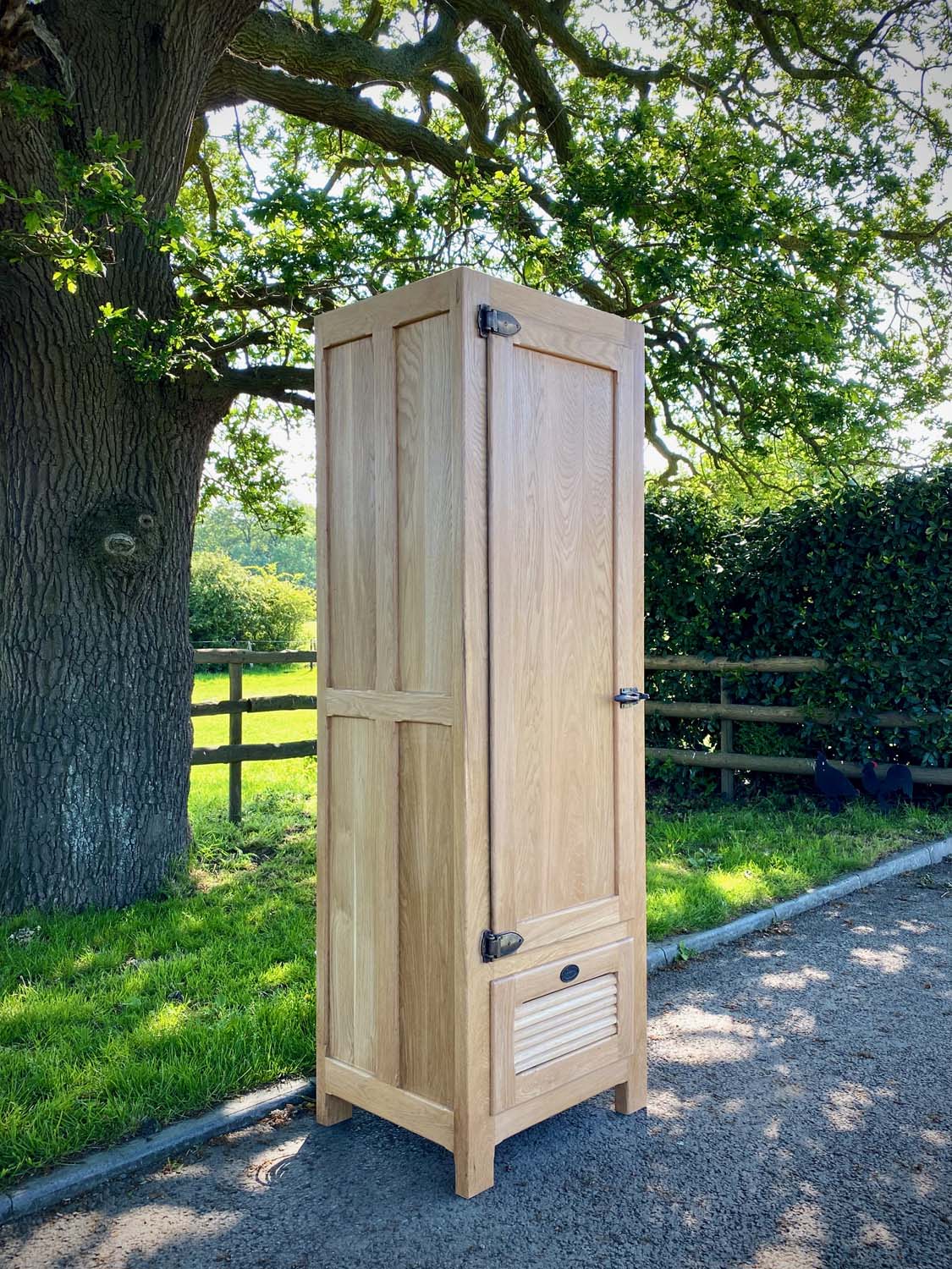 This solid oak timber fridge finished in natural wax, was designed by our in house joinery, for a 17th century Chateau in Southern France.