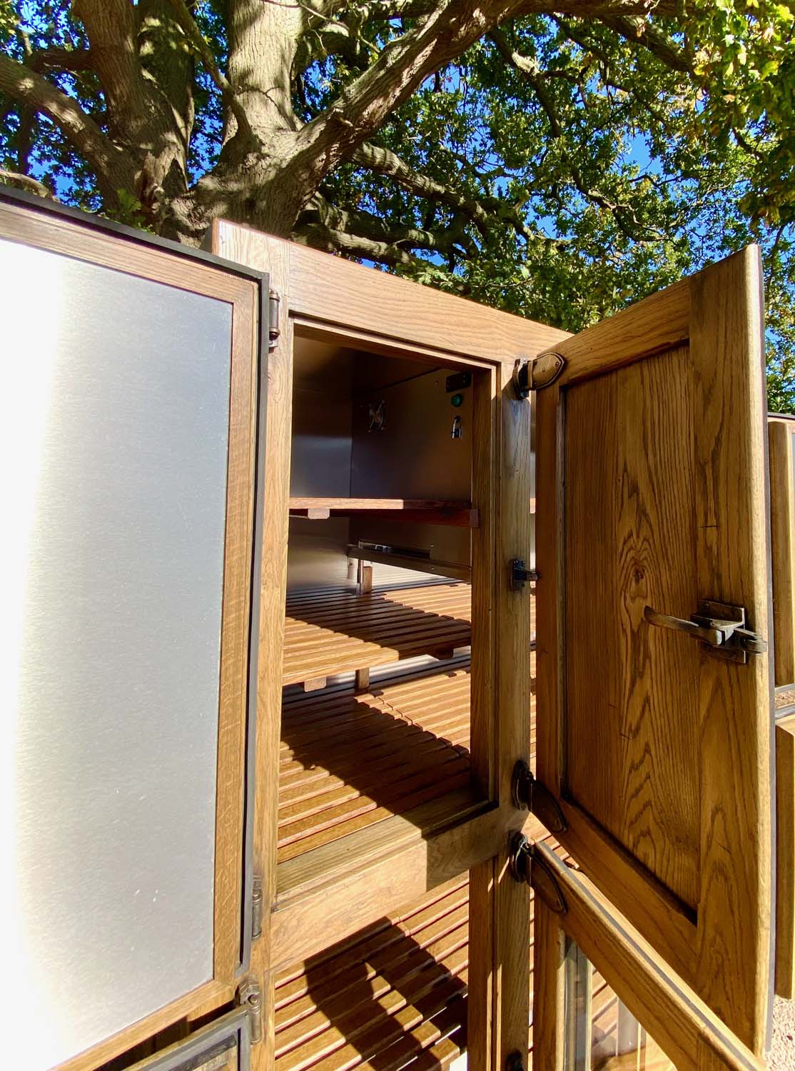 This fridge forms part of our Geladeira Collection, which we have designed in conjunction with our clients and constructed in our in-house joinery, based on the original early 20th century Brazilian six door ice box. For this particular model we used European Oak to construct the fridge.